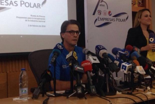 Luciendo una franela azul marca Nike, un distendido Lorenzo Mendoza dio hoy una rueda de prensa en la sede de Empresas Polar, con la asistencia masiva de medios nacionales y algunos extranjeros. El collarín de micrófonos dejaba ver a todos los canales nacionales, pero ninguno emitió en vivo salvo Globovisión (que curiosamente interrumpió su transmisión antes de que termine). Se vio por Periscope. PRODUCTO twitió en directo. Estos son los 7 puntos más resaltantes de la exposición de Lorenzo Mendoza Para enfrentar la situación económica. Evitó responder sobre temas estrictamente políticos pero dijo que si no se ponen en acción los sus planteamientos “no hay solución y todo se queda en puro blablablá… y el venezolano de a pie está cansado del blablablá”.